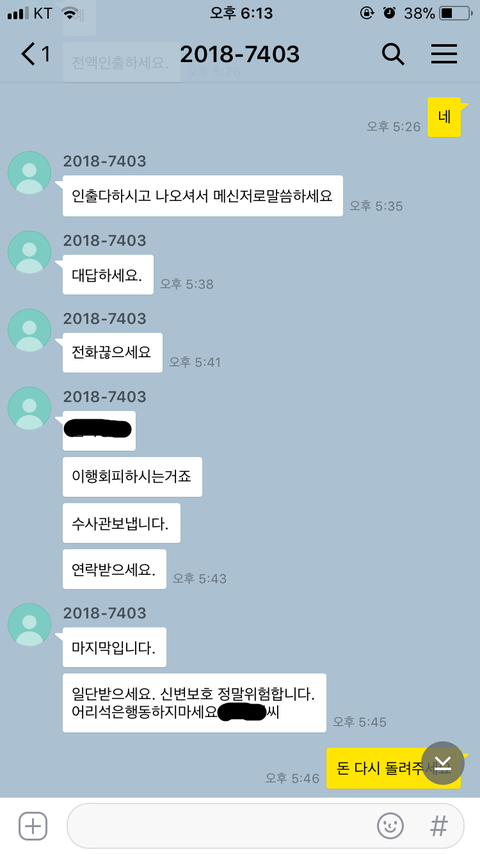 저는 2018년 06월 05일 바로 어제, 보이스피싱 사기를 당했습니다.