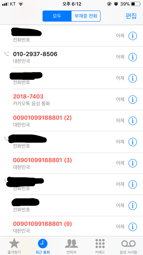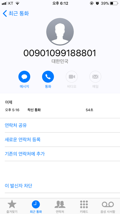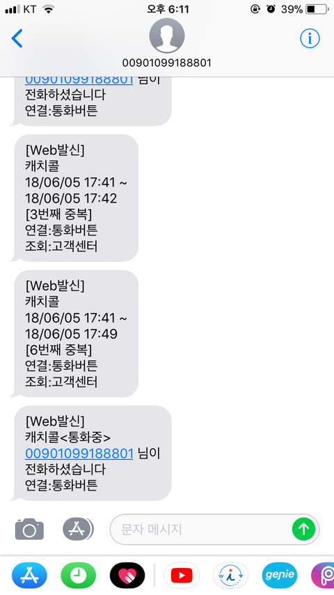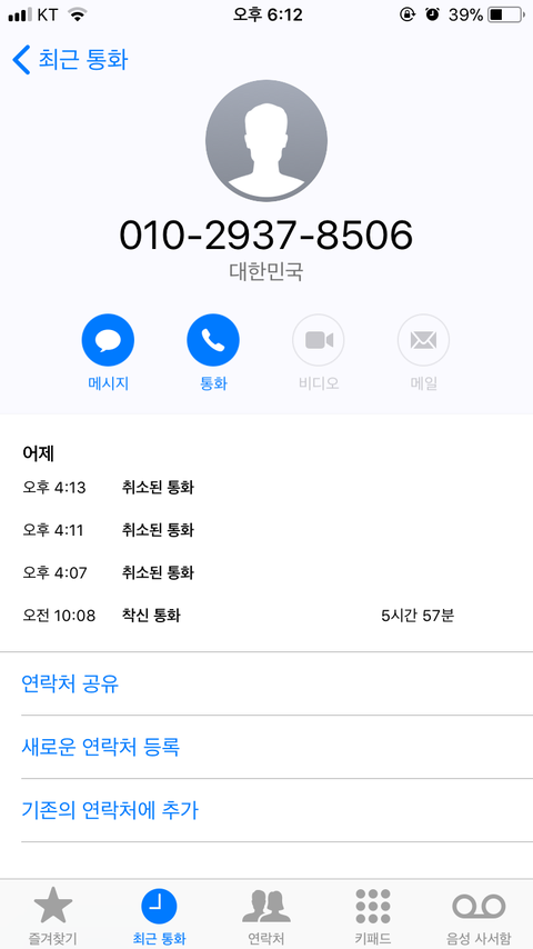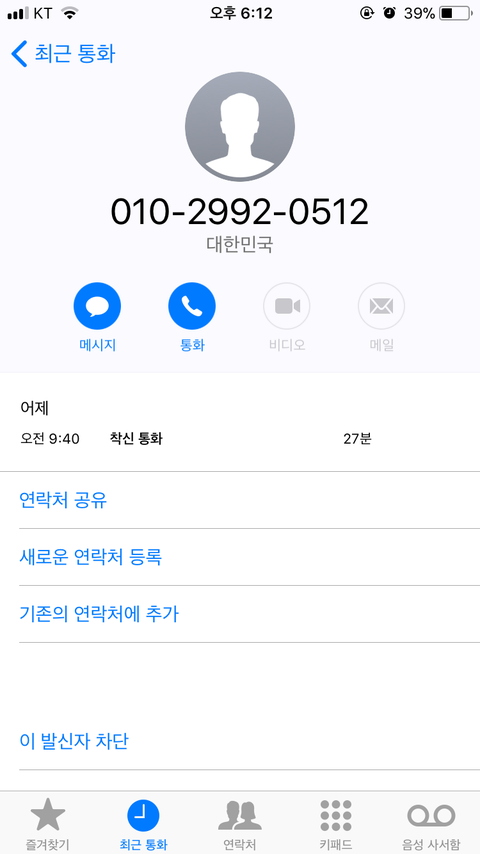 오전 10시경, 일반 핸드폰번호로 전화가 걸려왔습니다.