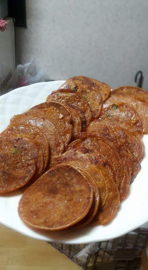 그냥 밀가루에 물을 섞어 부치기 할때 농도를 만들고 거기에 고추장 넣어서 소금간도 조금 하고 부친건데 쫄깃쫄깃 하고 매콤하고 괜찮았네요ㅎ.ㅎ