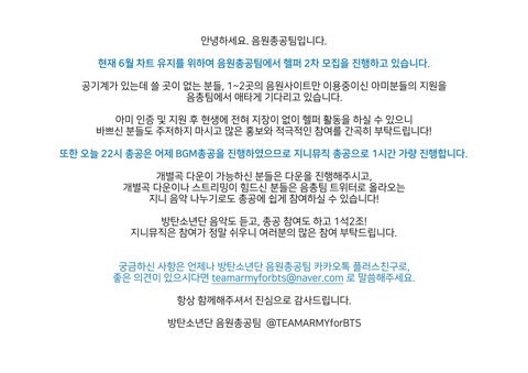 음원총공팀 헬퍼 2차 모집 지원 방법 : http://armyzip.com/notice/5491301