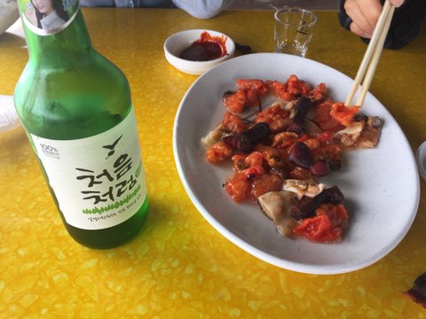 캬아아. 멍게 소주 그리고 바닷가...