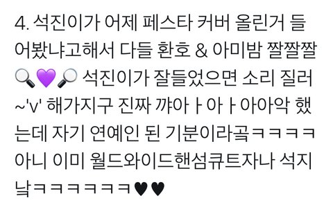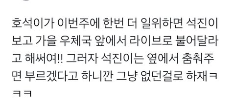 난 호석이 말하는 게 진짜 웃긴 것 같아ㅋㅋㅋㅋ 항상 주관있음ㅋㅋㅋㅋㅋ