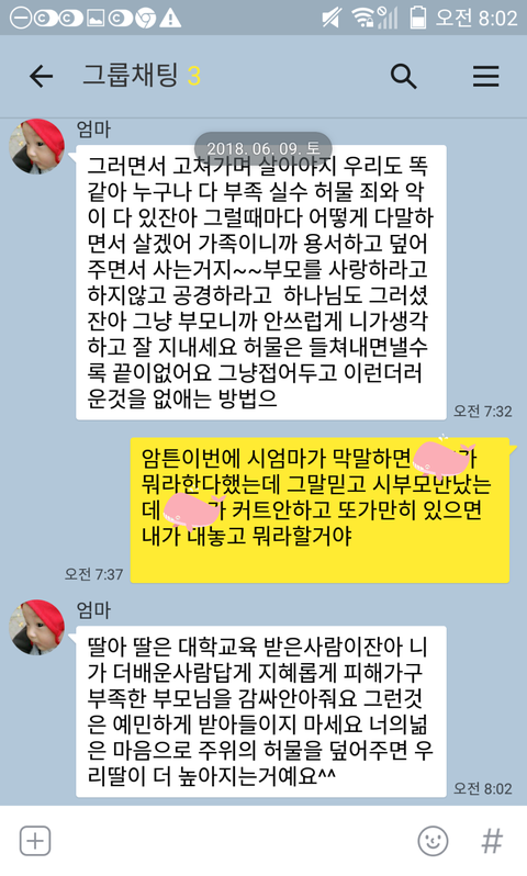 우리엄마한테 카톡으로 얘기했는데 이렇게 말씀하시네요.
