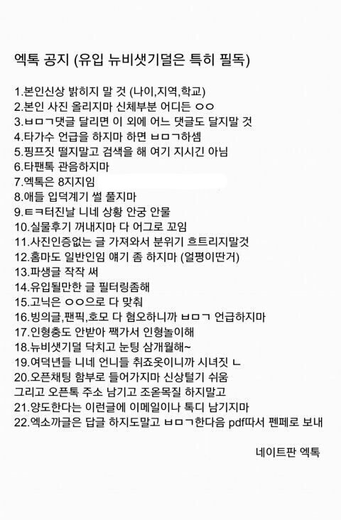 늅년들 이거 읽고 엑톡 규칙 좀 지켜