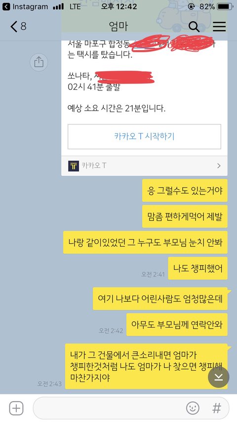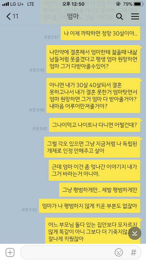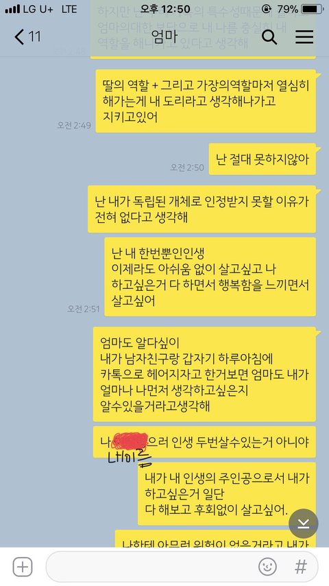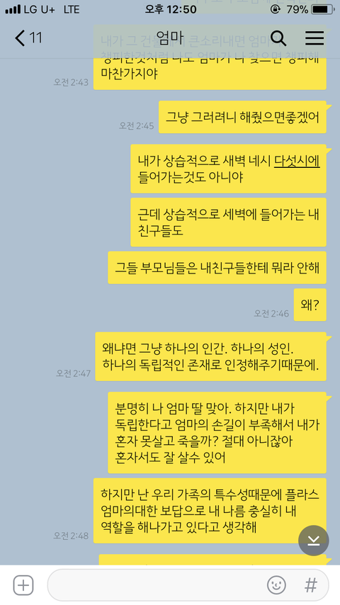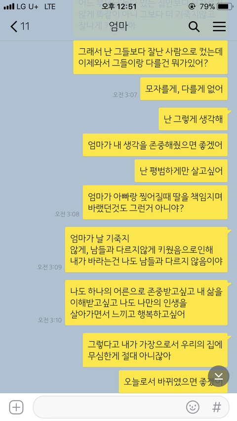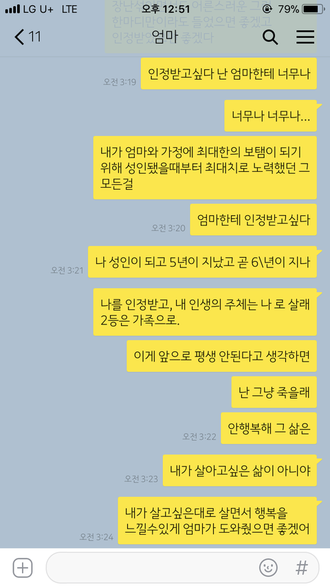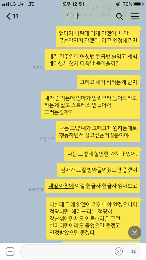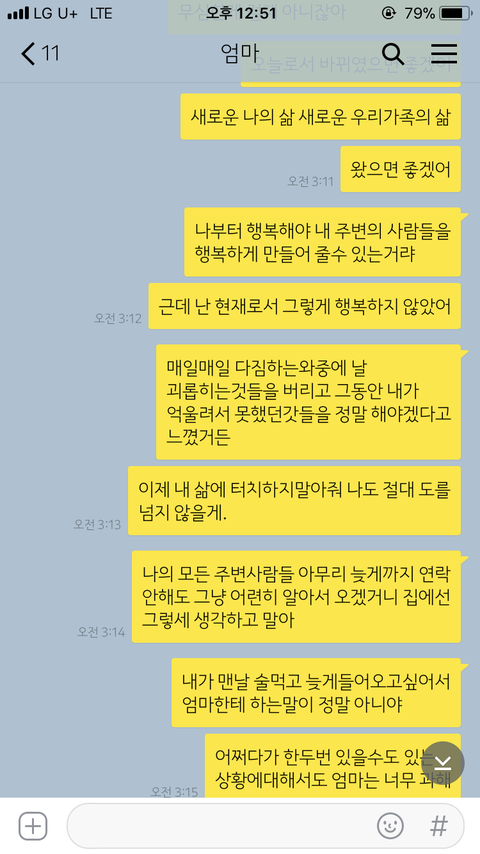 그때부터 엄마랑 한 카톡입니다. 길지만 봐주셨으면 좋겠어요.
