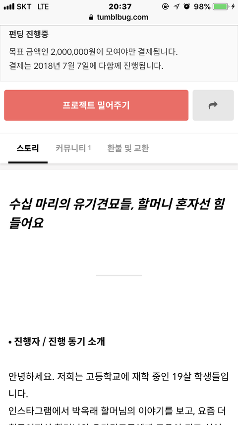 텀블벅으로 이것저것 보다가 요즘 유기견 문제에 관심이 많아져서 무슨생각을해도 내가 키우는 댕댕이도 생각나고 해서 우리 댕댕이 친구들도 도와줄수 있는 방법이 없을까 하다 여기에 올려보게 되었슴다!!!