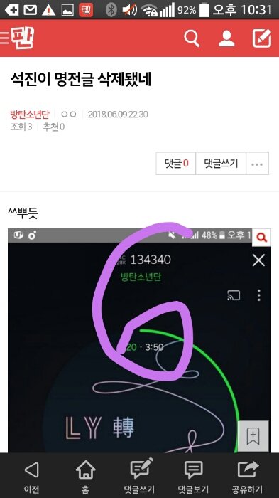 오늘팬톡에글쓴이삐들아.이거 내답글이야..