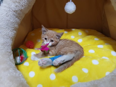 장난감을 가지고 노는법을 모르는 아기냥이 보배님ㅋ