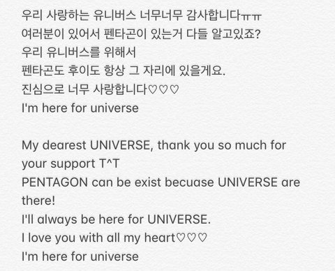+ 긴 글 읽어줘서 고마워! 타곤이들 정말 쉴 틈도 없이 다음 앨범 준비 들어갔다고 하니 펜타곤의 다음 앨범도 예쁘게 지켜봐줘! 아 그리고 빛나리 좋다고 글 올려준 판녀들도 잊지 못 해ㅠ 진짜 힘이 많이 됐오 고마워♡