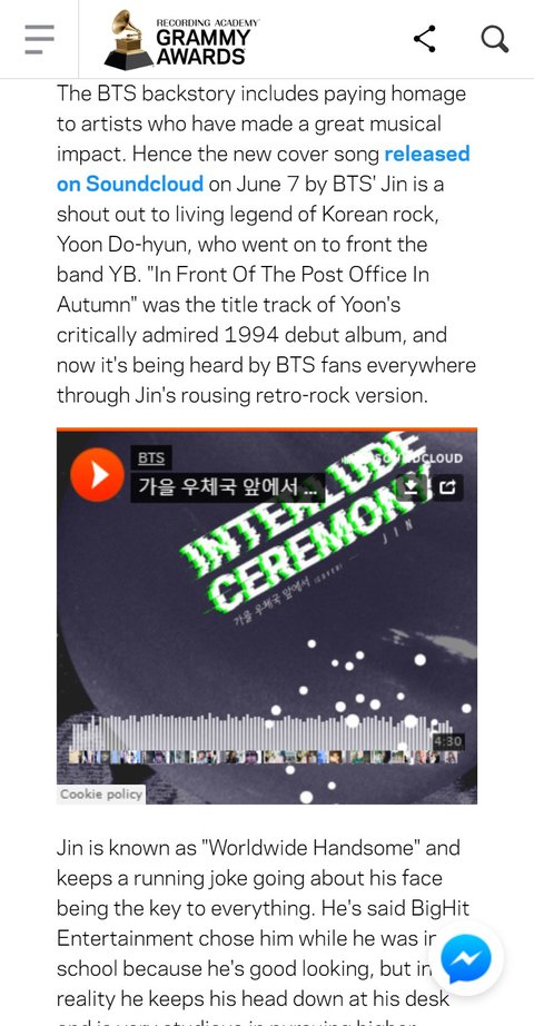 그래미 어워즈 기사 주소 https://www.grammy.com/grammys/news/bts-jin-covers-korean-rock-ballad-debut-track-yoon-do-hyun