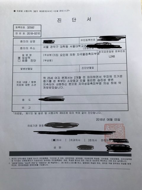 가정의학과에서는 임상적으로 보았을 때 '습진'으로 보인다며 피부과로 제 케이스를 넘겼고,
