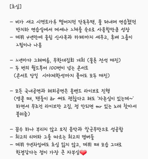 “그땐 정말 1년이 10년 같았다. 너무 힘들었지만, 지금 생각하면 가장 행복했다. 우린 뭔가 뚝심 있게 한 것 같다. 디지털 싱글이 대세이고, 앨범을 안 내도 가수 활동이 가능한 시대지만, 우리는 우직하게 앨범 내고 앞만 보고 달렸다. 그걸 인정받는 것 같다. 우리에겐 후진이 없다.”