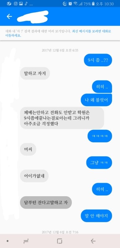 이거는 친구가 나한테 보내준 거야 내 짝남이 얘한테도 나랑 연락 되는지 물어봐서 엄청 심쿵했어 ㅠㅠㅠ