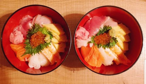 밥에 초를 넣고 그위에 먹고싶은 생선회 올리면
