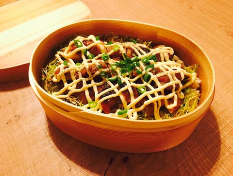 새콤하게 무친 실파채위에 올린 도시락입니다.