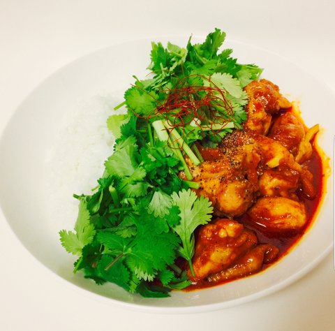 매콤한 불닭이랑 고수나물 잘 어울려요