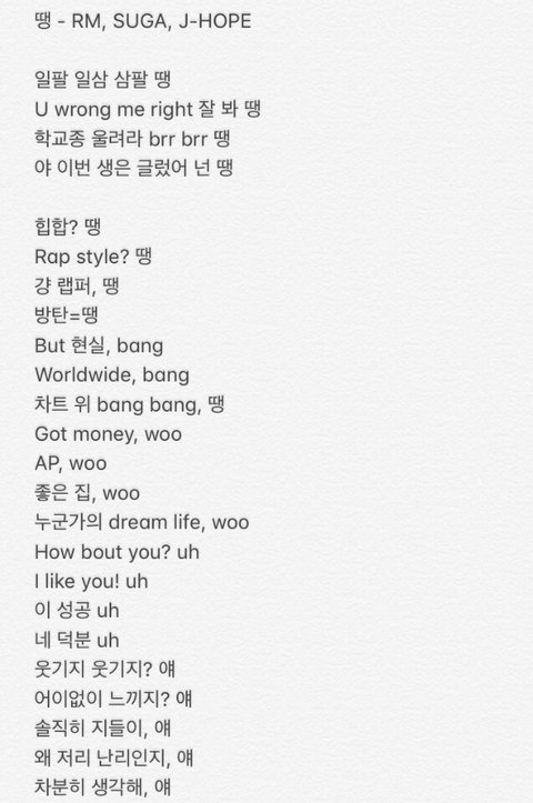 땡- RM,SUGA,J-HOPE ( 가사 )