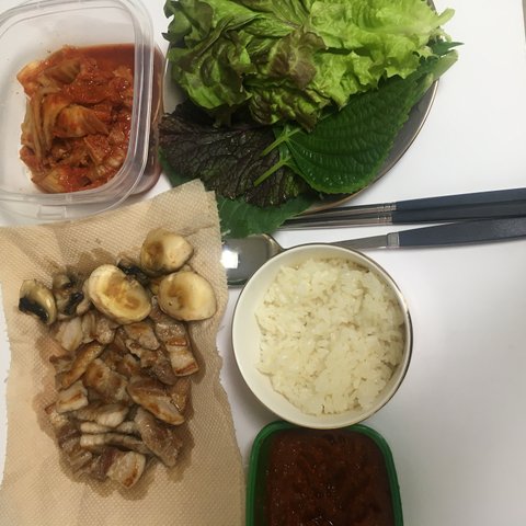 삼겹살이 먹고 싶어 마트에서 장봐서 후다닥 해먹었네욤!!