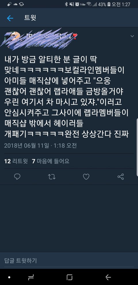 랩라 형아들 밖에서 ㅇㄱㄹ 줘패고 있는거 상상하니까 왤케 웃기냥 ㅋㅋ