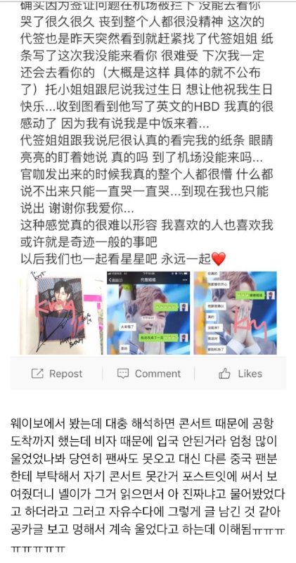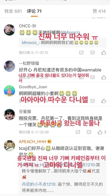 어제 공카에 녤이가 남겨준 글로 차룽이들 웨이보에 난리나쏘 내가봐도 따숩던데 차룽이들은 어땠을지ㅠㅠ 해외팬들까지 생각해주는 마음이 너무 예뽀❤
