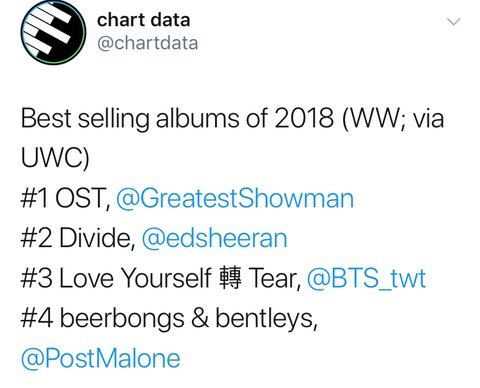 2018년 전세계 앨범 판매량 현재 3위!