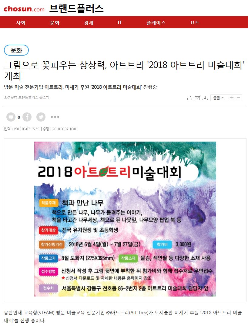 조선일보에 아트트리 기사가 실렸습니다.
