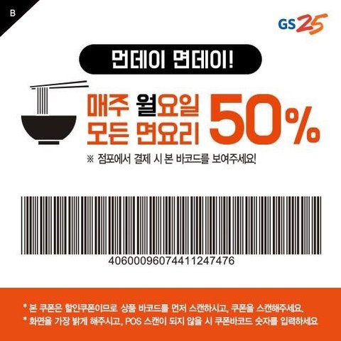 +++++울동네 GS는 알바분이 쿠폰 요구를 안해서 몰랐는데 원래 이 쿠폰 바코드를 계산전에 보여줘야 할인이 되는거래 !!!