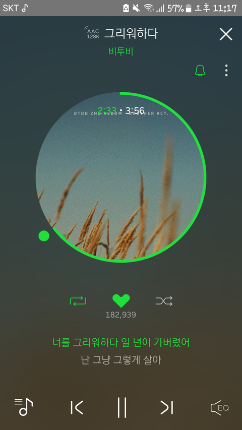 그리워하다 옆에 음표모양이 안뜨는데