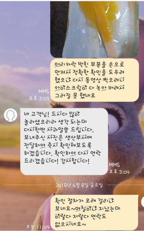 그래도 사과는 하고 생산부서에 사진 동영상 전달해서 확인 해본다길래 기다림.