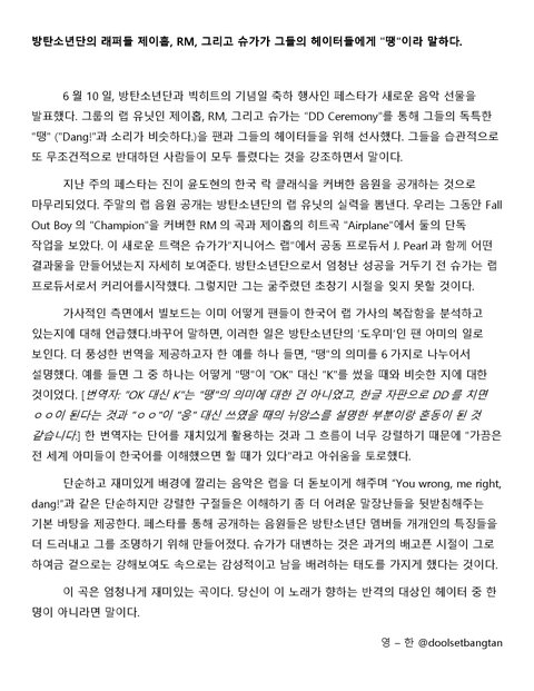 링크 https://www.grammy.com/grammys/news/bts-rappers-j-hope-rm-and-suga-say-ddaeng-their-haters