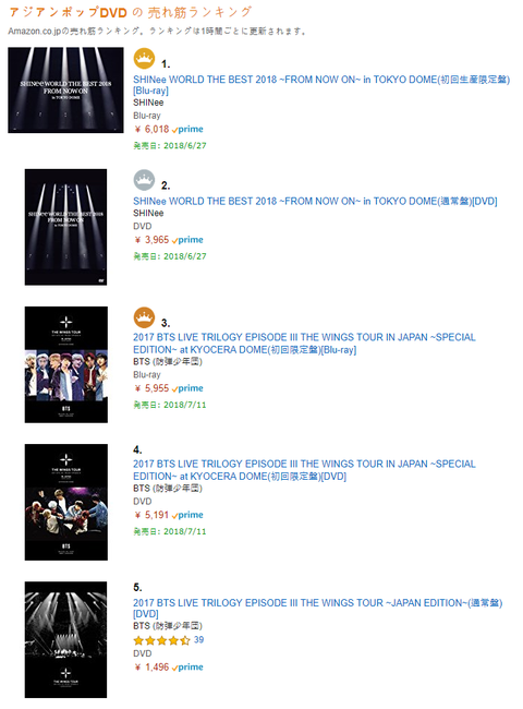 샤이니,방탄소년단 일본 DVD차트 순위.JPG