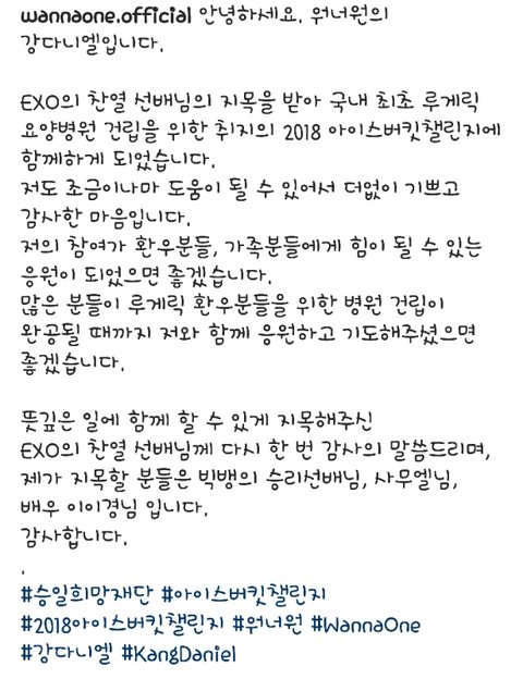 웨이보실검 강다니엘 아이스버킷챌린지