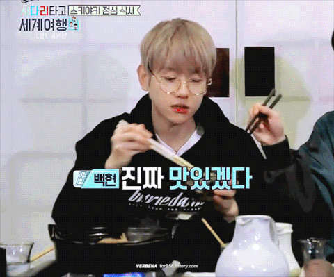 [17화] 애교를 부르는 스키야키 먹방 백현 gif 2