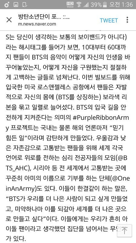 넌 혼자 걷지 않는다”라고 말해주는 BTS에 대해 전 세계 팬들이 느끼는 애착은 상상을 뛰어넘는다. BTS를 두고 “피곤한 얼굴. 어쩐지 나와 닮은 듯한 그늘. 우리 같이 살아내고 있다고. 천천히 우리가 할 수 있는 것을 하면서 가자고 말하는. 목적과 목표만 중요했던 날들의 끝과 함께 찾아온 우리의 아이콘”이라고 말하는 어느 팬의 말은 그들에게 받는 위로가 어느 정도인지 짐작하게 한다. 그러니 달콤하고 화려한 포장으로 일시적 탈출구를 제공해주던 케이팝을 벗어나 밀레니얼 세대의 맨얼굴이자 롤모델로 받아들여지는 BTS를 두고 ‘포스트 케이팝’이라 부르는 것은 결코 과한 시도가 아니다. (기사내용중)