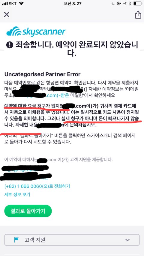 이번 계기로 스카이스캐너까지도 이용하고 싶지 않아질 정도로 불편을겪었습니다