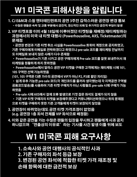 이러한 변경으로 인해 해당 콘서트에 참여하려던 많은 국내외 워너블들이 부당한 피해를 입었습니다.