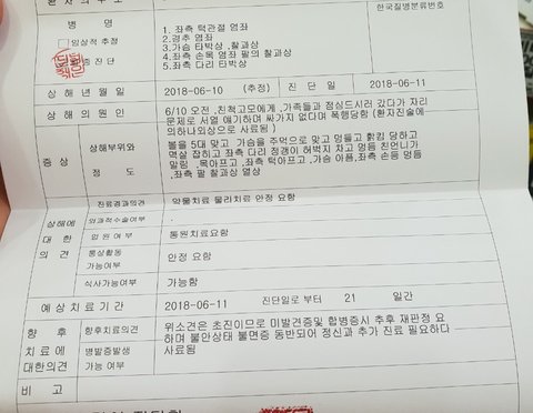 영상은 제가 가지고 있는데 문제 될까봐 올리지는 못하고 상해진단서만 올려봅니다..