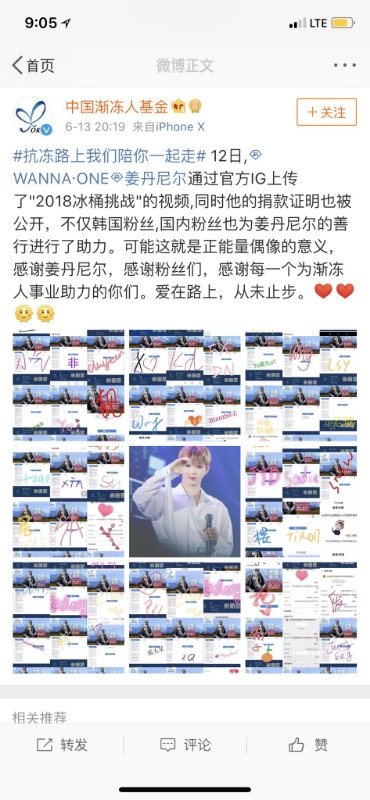 중국 루게릭후원단체에서 강다니엘이랑 팬들한테 감사인사올려줬어!