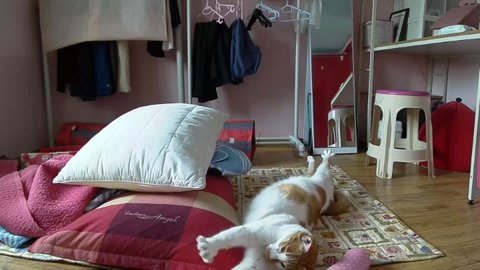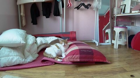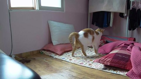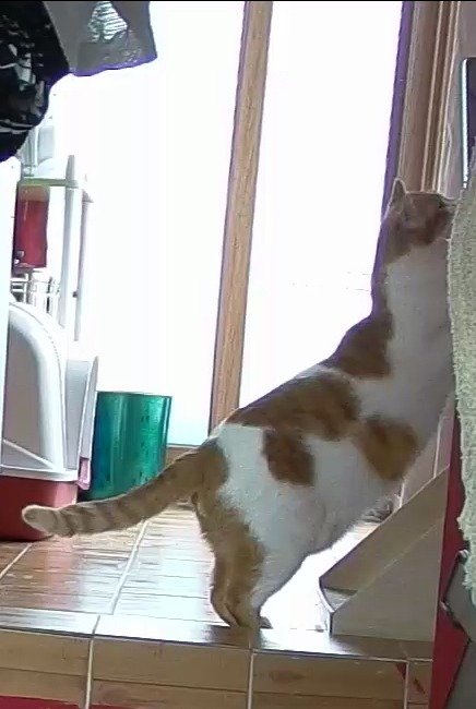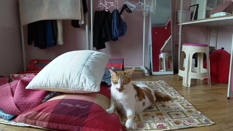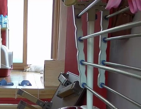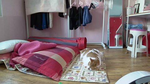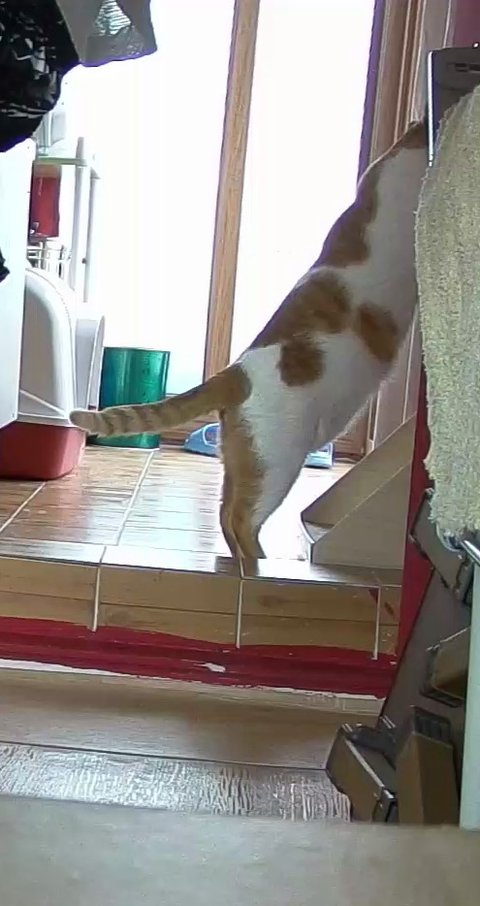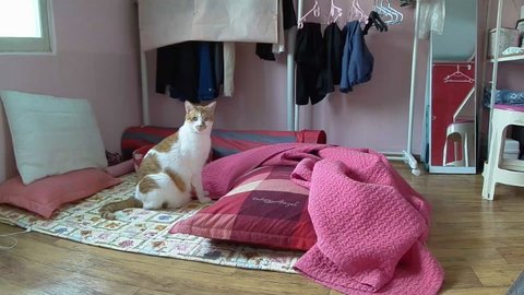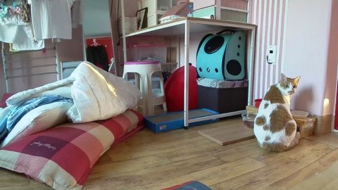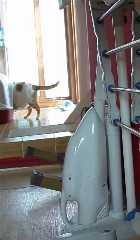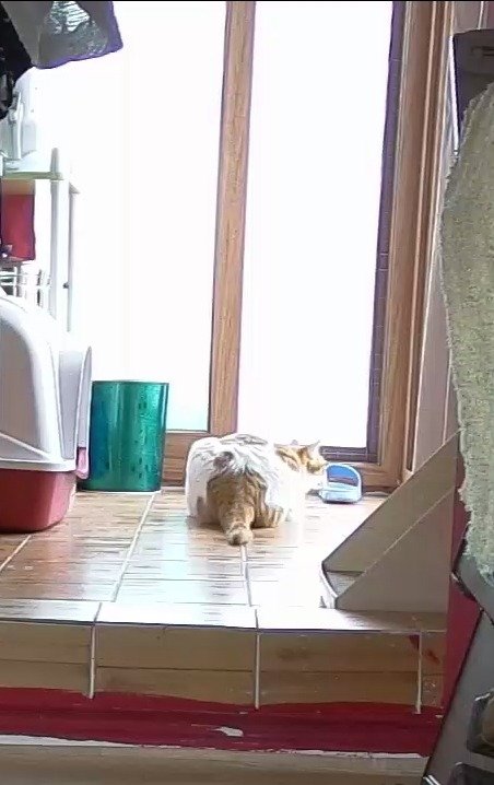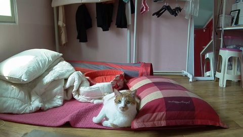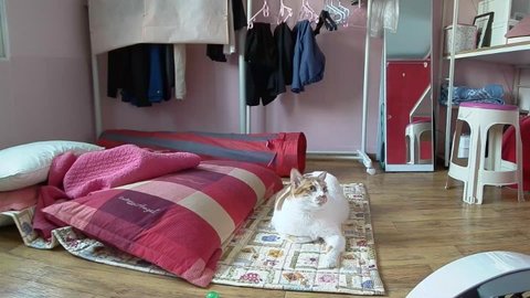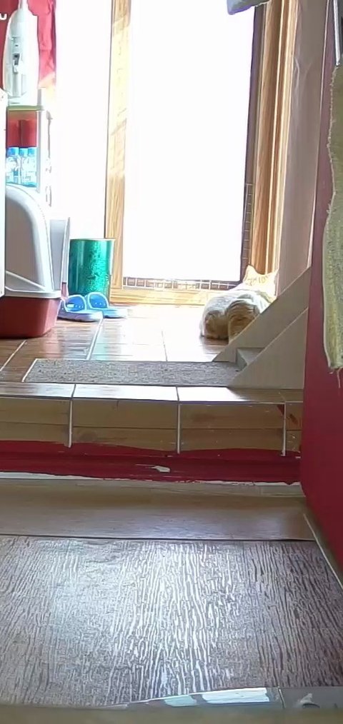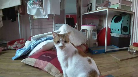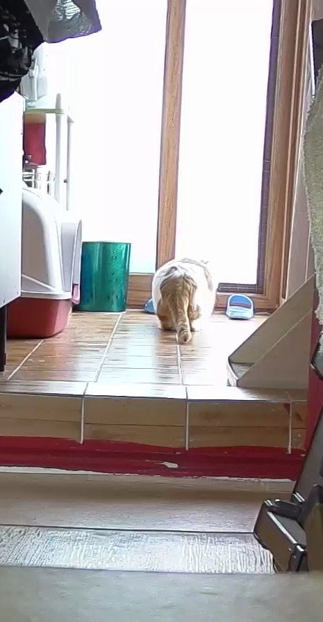 집사 출근하고 움직이는 카메라 바라봄.