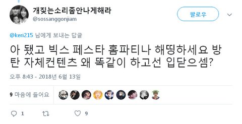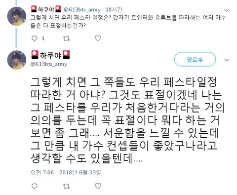 1) 방탄 페스타의 어떤걸 따라했다는건지 모르겠는데 누가 좀 알려줘라.