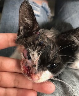 아가의 얼굴을 좀 더 자세히 살펴보았더니 더 심각한 상태였습니다.
