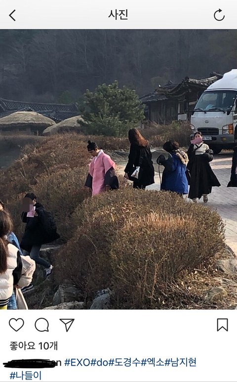 근데 목격담으로 곤룡포 등등 한복 입은 사진들이 뜨는데 앞모습만 안 보임