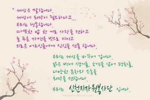 신천지 자원봉사단 덕에 처음 알게 되었어요.