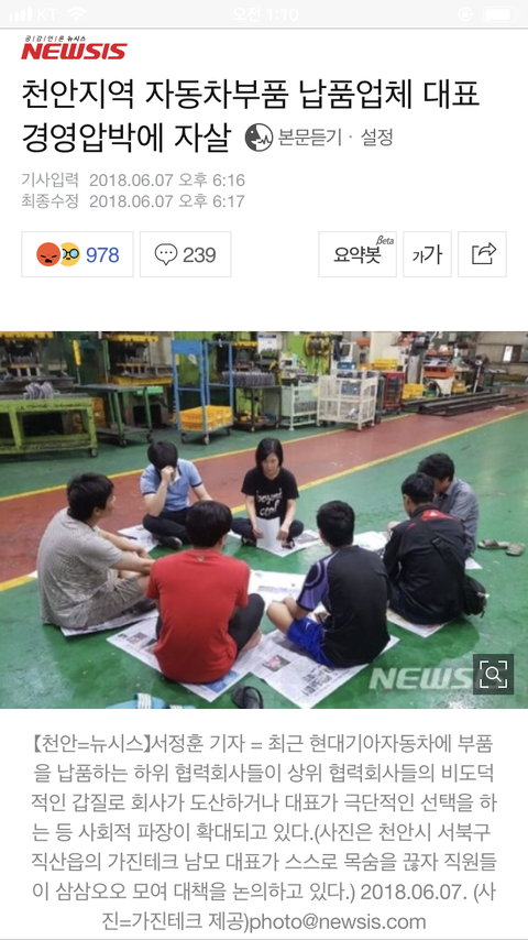 대표이사님 사망소식과함께 지역일보에 기사가 나가자 주변에서 저희같이 갑의 횡포에 당한 비슷한일을 겪은 여러업체에서 힘내라고 연락이 오더군요.