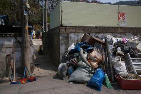상계동에서도 변두리쪽은 낙후된 벽과 철재칸막이 벽,