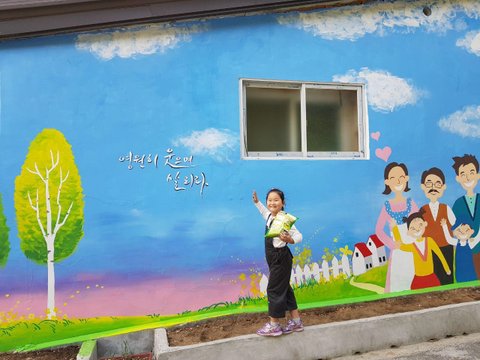 평화로운 마을이 되기를 염원하며 벽화를 그리더군요