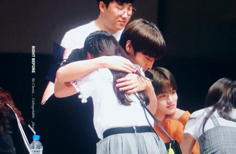 이거는 어린팬이 박지훈보고 갑자기 눈물을 쏟았는데 박지훈이 매니저님한테 휴지좀 가져다 달라고해서 휴지주고 어린팬분 안아주는 모습이야