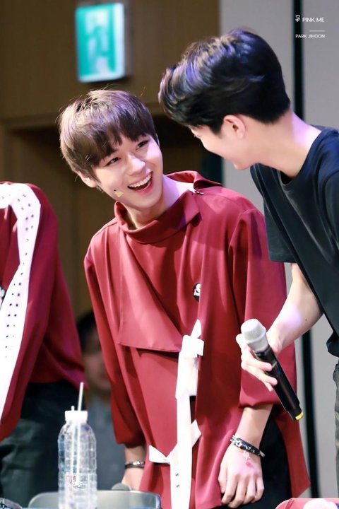 이건 가장 최근에한 팬싸에서 종이컵으로 팬과 대화하는 모습이야ㅠㅠ 종이컵 대화 신박하다ㅋㅋㅋ 박지훈 말하고 웃는거 스윗해