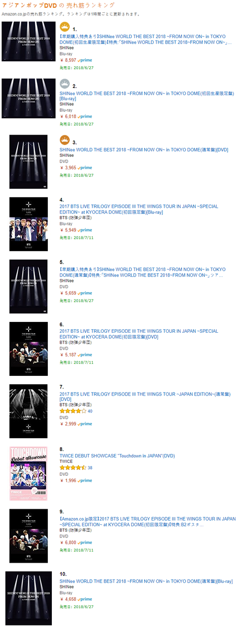 현재 일본 아마존재팬 DVD 판매 TOP10