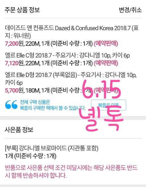 아까 주문했던거 취소하고 다시 주문해쏘 선밀크는 잘 안써서 사은품 없는걸로 주문ㅋㅋ 그리고 이번달 워너원 리복 화보 실린다는 데이즈드도 1권 같이 주문함 엘르는 더 살꼬야 희희